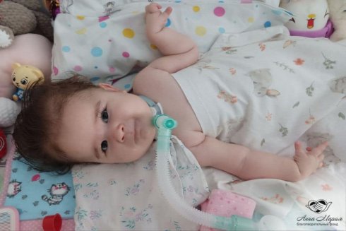 На сегодня Варенька преодолела множество апноэ, два раза лежала в реанимации. Она не держит голову, не двигает ножками, на бок не переворачивается, в ручках нет сил. Ей установили трахеостому. Варя кушает и принимает лекарство через зонд. Во время сна не обходится без аппарата ИВЛ.