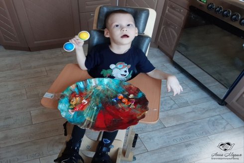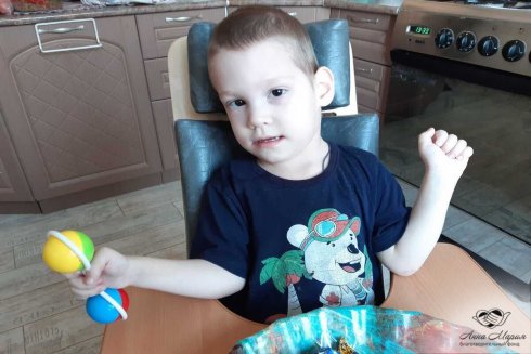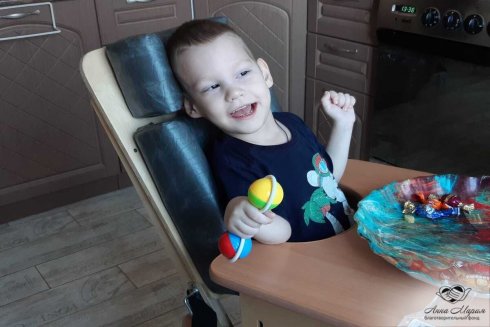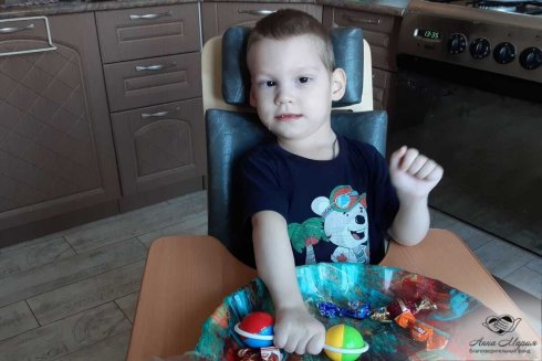 В свои три года Ярослав сам не сидит, не переворачивается, плохо держит голову, кушает только мягкую пищу, задыхается от ветра на прогулках. Тем не менее занятия со специалистами дают положительные результаты. После нескольких курсов лечения сын научился сидеть в специальном стульчике и коляске, немного лучше стал держать голову. Ребенку нравится слушать песенки, он понимает много слов, любит наших домашних кошек, знает, как их зовут и всегда им улыбается. Ярослав с удовольствием занимается на виброплатформе. Самое любимое занятие Ярослава - разговаривать с бабушкой по видеосвязи.