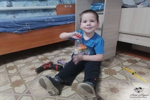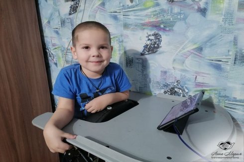 О себе: Алеша очень любознательный мальчик, не смотря на редкий диагноз он ходит в детский сад. У него там много друзей. Очень любит играть с ребятишками в детскую кухню. А дома очень любит играть со старшим братом в лего и рассматривать энциклопедии. Передвигается малыш с помощью коляски активного типа.