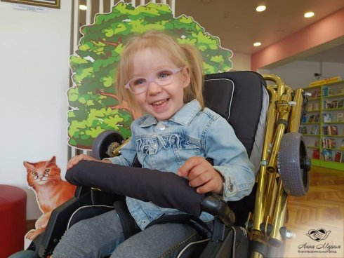 Родители стараются следить за состоянием Василисы и выполнять все рекомендации врачей. Девочка часто стоит в вертикализаторе, пользуется колясками дома и на улице, проходит рентген тазобедренных суставов. Но, к сожалению, у Василисы была зафиксирована отрицательная динамика. Сейчас она не может самостоятельно стоять, ходит на носочках в ходунках, появился перекрест во время ходьбы. Чтобы улучшить ее состояние, трижды была выполнена ботулинотерапия, один раз поэтапное гипсование голеностопа.