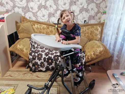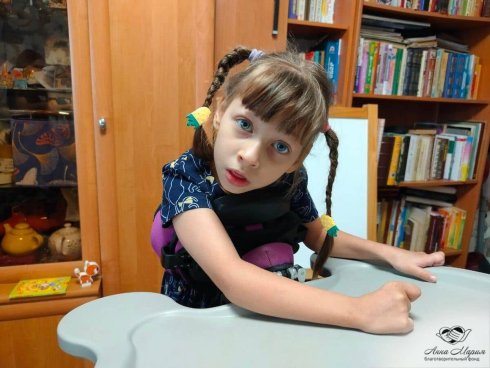 Хороший результат дала реабилитация в центре «Ангелбеби», который Вика посещает с года. За это время в центре сформировалась команда реабилитологов, которая постоянно работает с девочкой. Благодаря им Вика научилась держать головку, переворачиваться, сидеть с поддержкой. К сожалению, она пока не умеет самостоятельно сидеть, стоять, ходить. Но зато уверенно держится в вертикализаторе, с усилиями может передвигаться в ходунках. Ручки слушаются ее слабо, захват предметов ограничен. Несмотря на спастику, она может показать пальцем правильный ответ на картинках, отвечает на вопросы педагогов глазами, а также учится управлять взглядом на айтрекере.