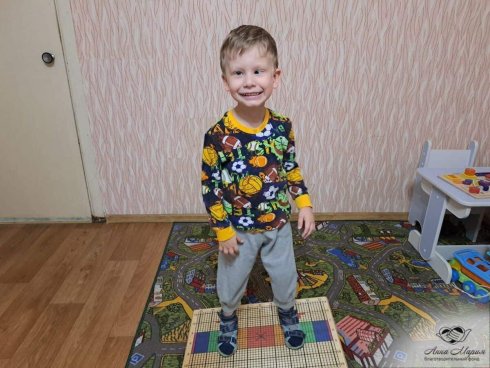 С каждым курсом в его речи появлялись новые звуки, он стал более внимательный и отзывчивый, улучшился зрительный контроль, сегодня он слышит и понимает обращенную к нему речь, даже пытается с помощью звуков что-то сказать ответ, умеет собирать пирамидки, любит складывать геометрические и другие фигуры.