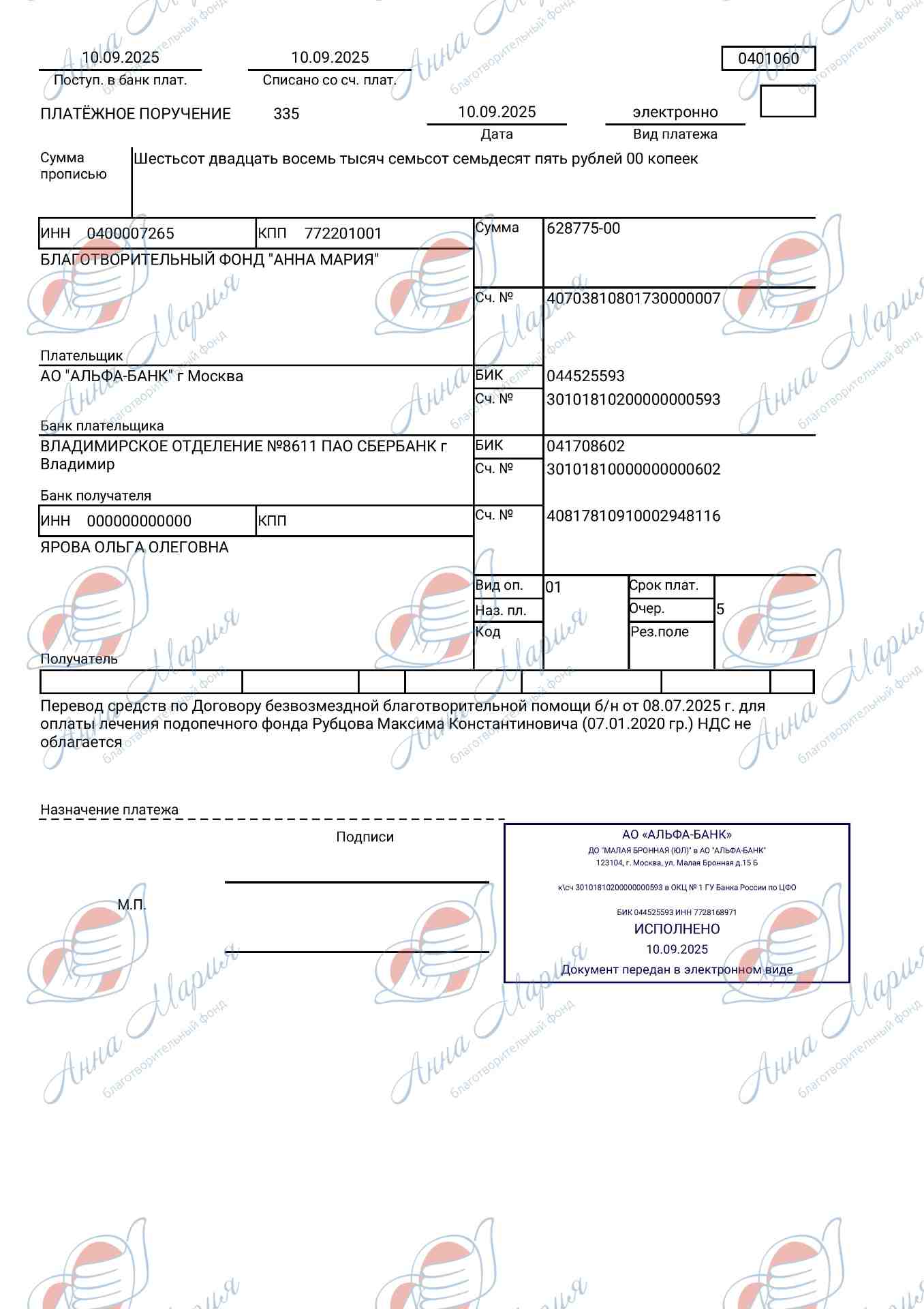 Ирина Зайдман сказала, что шансы у мальчика хорошие – ему нужна иммунотерапия с пересадкой костного мозга от донора, который не является родственником. Это шанс на полное выздоровление – проходить заведомо известный путь лечения, который не привел к результату, семья не хочет. Лечение в клинике Израиля стоит 25 млн. рублей. Фонд «Анна Мария» проводит частичный сбор средств. Давайте вместе поможем маленькому Максиму!