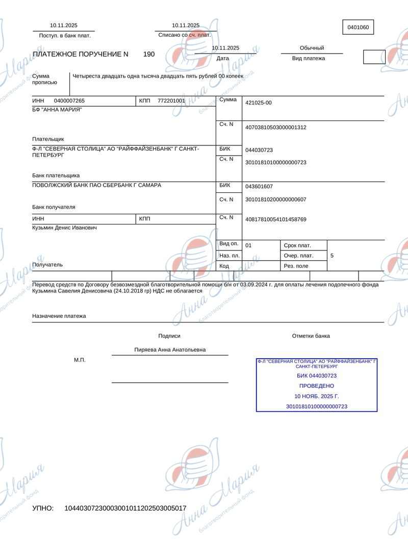 В марте 2025 г. Савелий прошел обследование в клинике Fakeeh University Hospital, ОАЭ. Врачи подтвердили, что он подходит для лечения препаратом Elevidys, и на данный момент он есть в наличии. Единственная проблема – препарат стоит 2,9 млн. долларов. Эта цена жизни маленького ребенка. Семья не сможет справиться без вашей помощи.