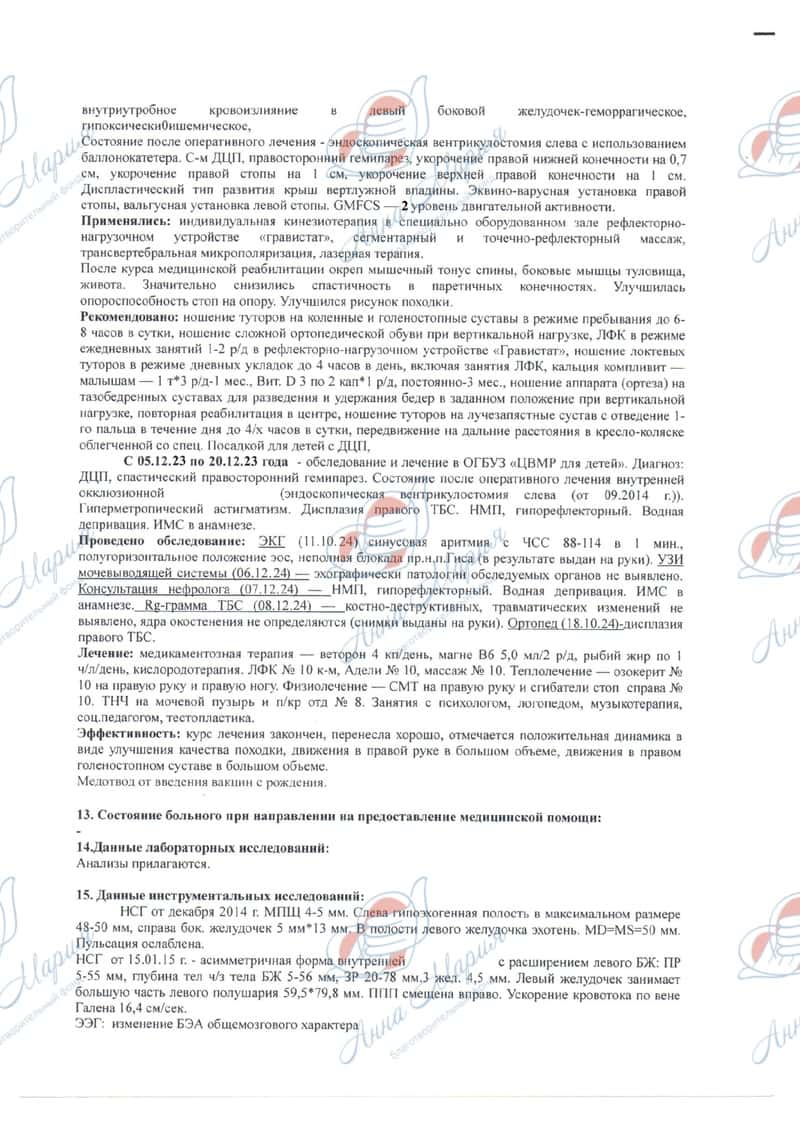 Чтобы понять, что случилось, мама поехала с дочкой в ФГАУ «НМИЦ здоровья детей» Минздрава России на обследование. В Москве врачи объяснили, что это симптомы гемипареза – заболевания, которое возникает на фоне геморрагического инсульта и характеризуется ослаблением двигательных функций одной половины тела. В данном случае – ослаблением правой половины тела из-за повреждения левого полушария мозга.