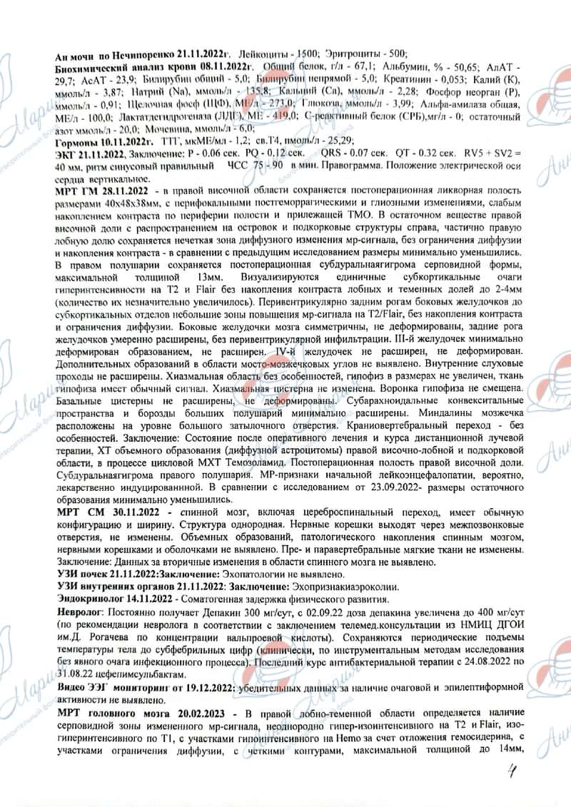 После отделения нейрохирургии удалось получить направление в ФГАУ «НМИЦ нейрохирургии Н.Н. Бурденко» в Москву для Саши. Операция там продолжалась семь часов и, к счастью, прошла успешно. Хотя после нее девочка восстанавливалась тяжело, долгое время у нее держалась температура, все считали, что это – большая победа.
