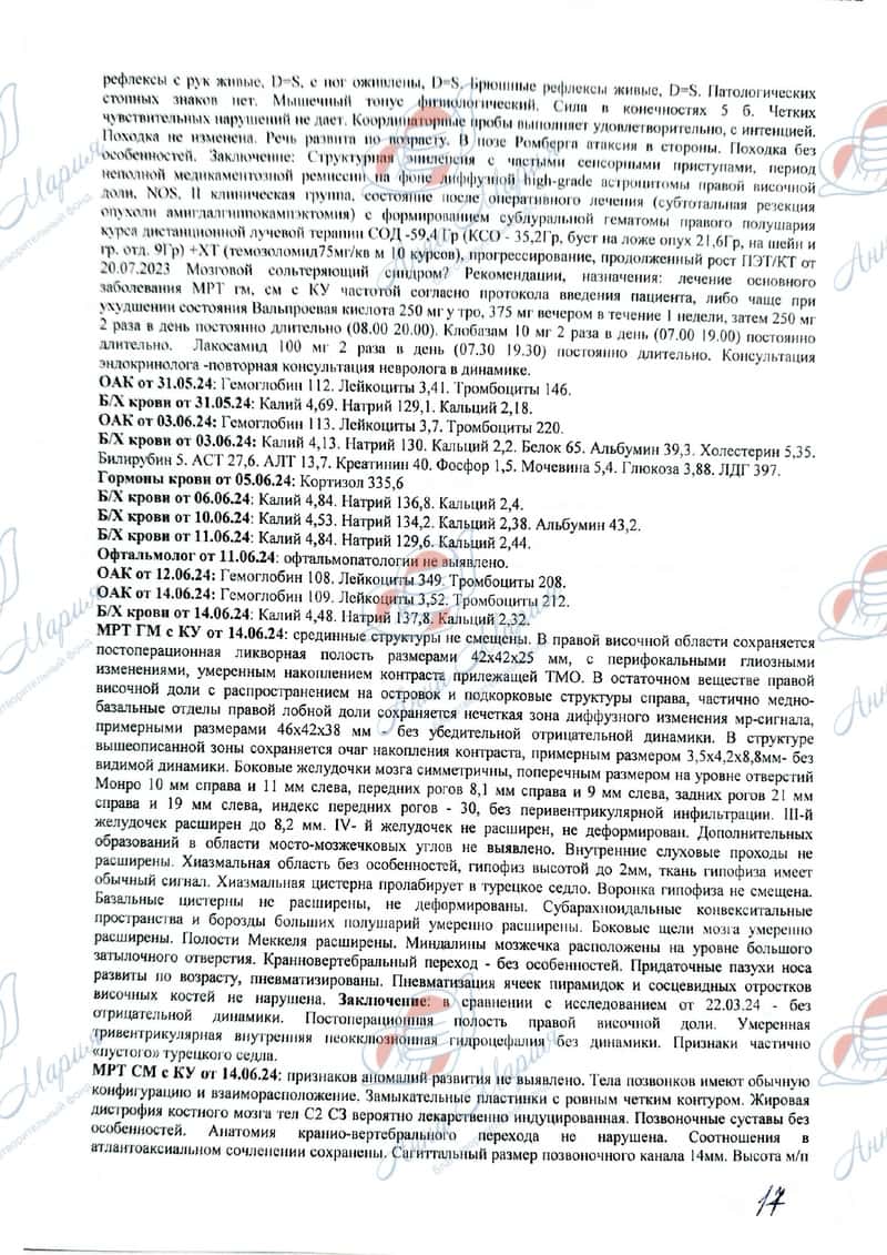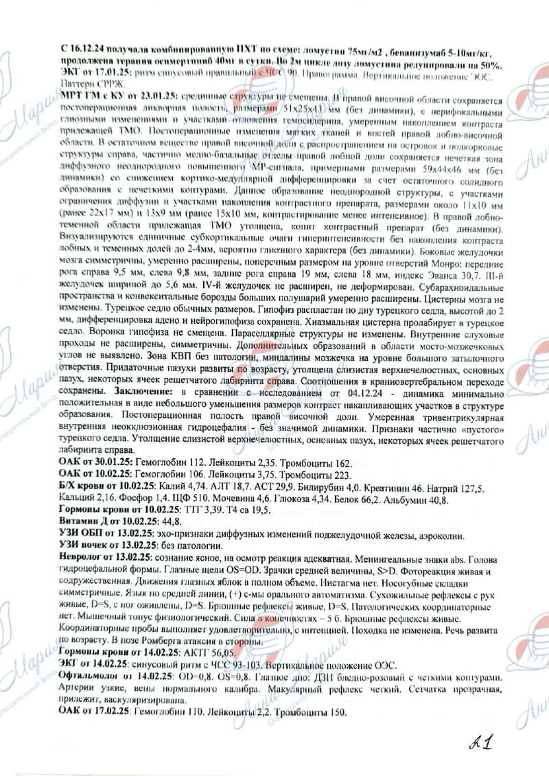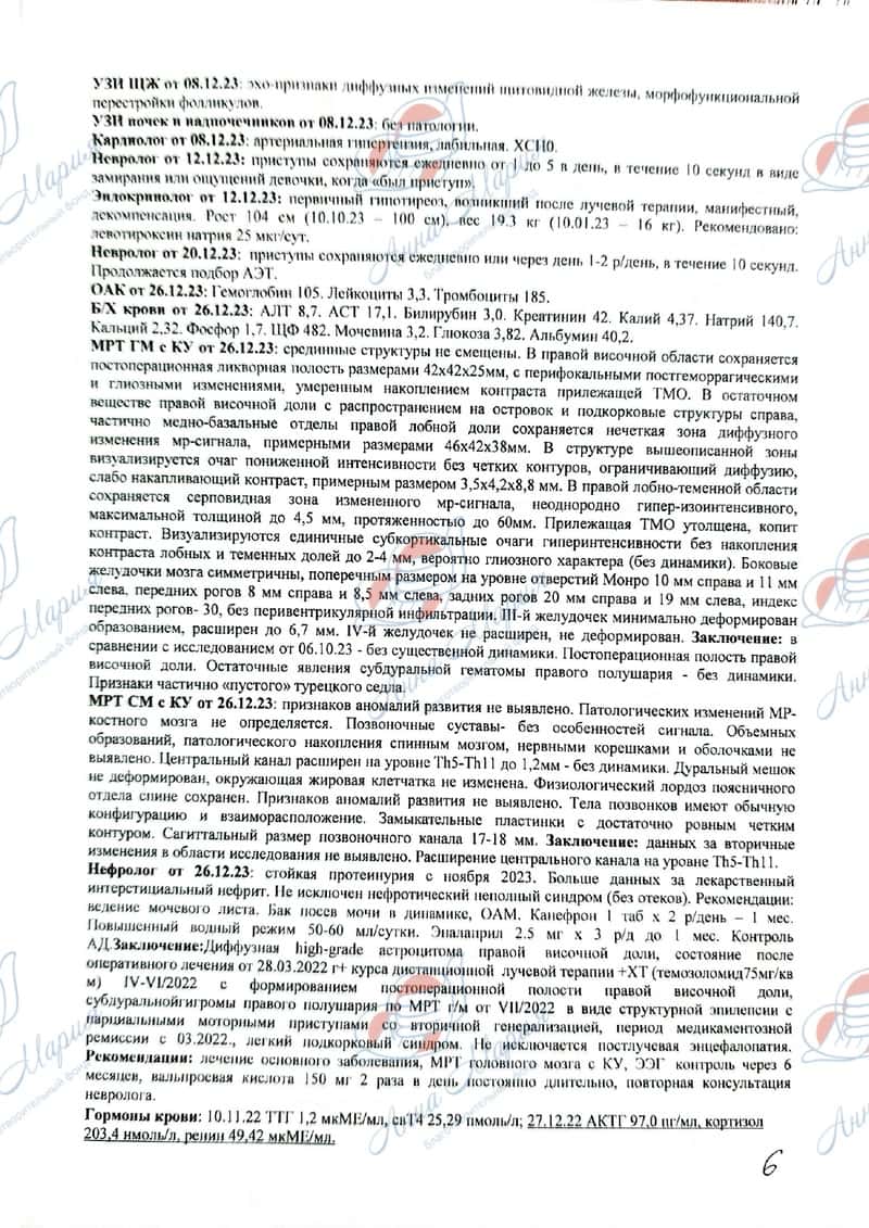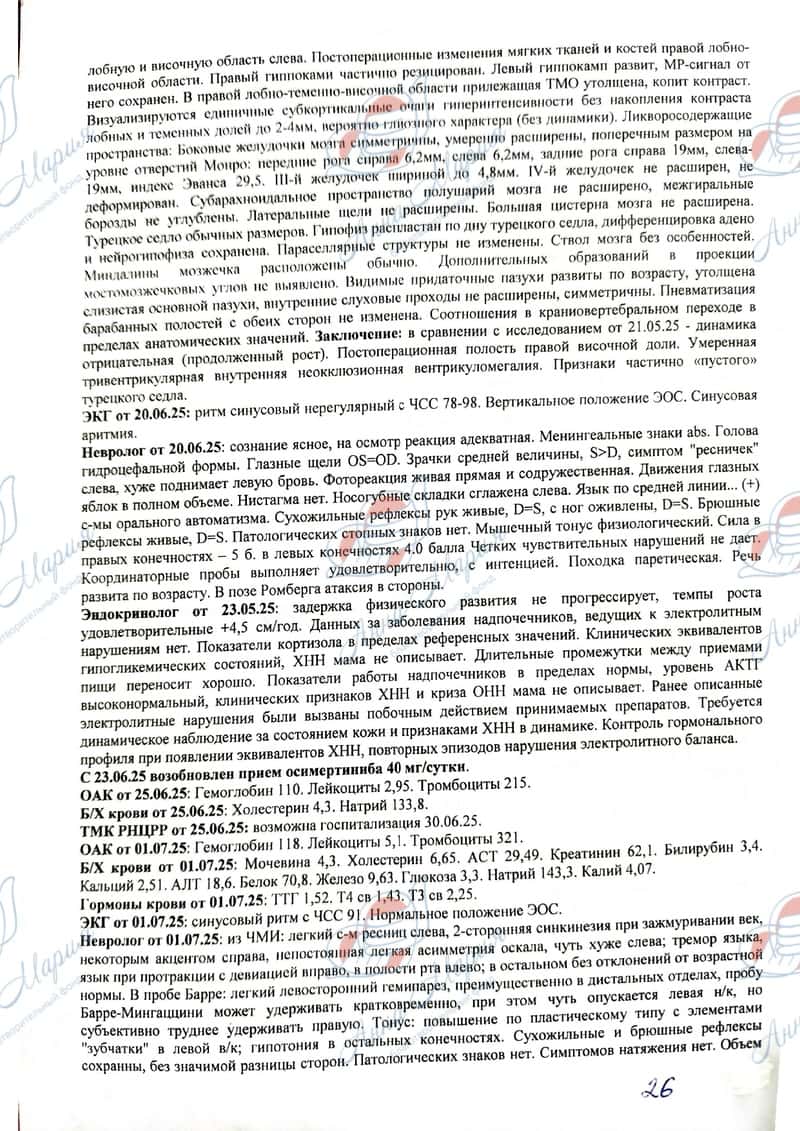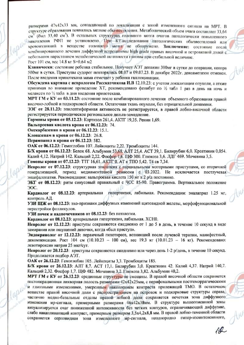 Проблемы со здоровьем у Саши начались с эпилептического приступа. Врачи направили ее на обследование в отделение нейрохирургии. Чтобы правильно поставить диагноз, пришлось сделать биопсию, и она лишь подтвердила худшие опасения – диффузная high-grade астроцитома (глиома) правой височно-лобной доли. Она возникает из глиальных клеток и отличается тем, что быстро прорастает в соседние участки мозга.