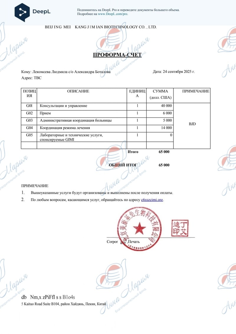 Мама Саши обратилась за консультацией в разные клиники, и из одной из них ей ответили. Это клиника в Китае – врачи дали последний шанс и сказали, что готовы принять девочку на инновационную CAR-T терапию, назвав сумму за человеческую жизнь – 6 500 000 рублей. Процедура предполагает извлечение Т-иммунных клеток из крови и их дальнейшую генетическую модификацию для распознавания опухоли.