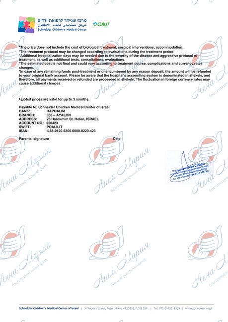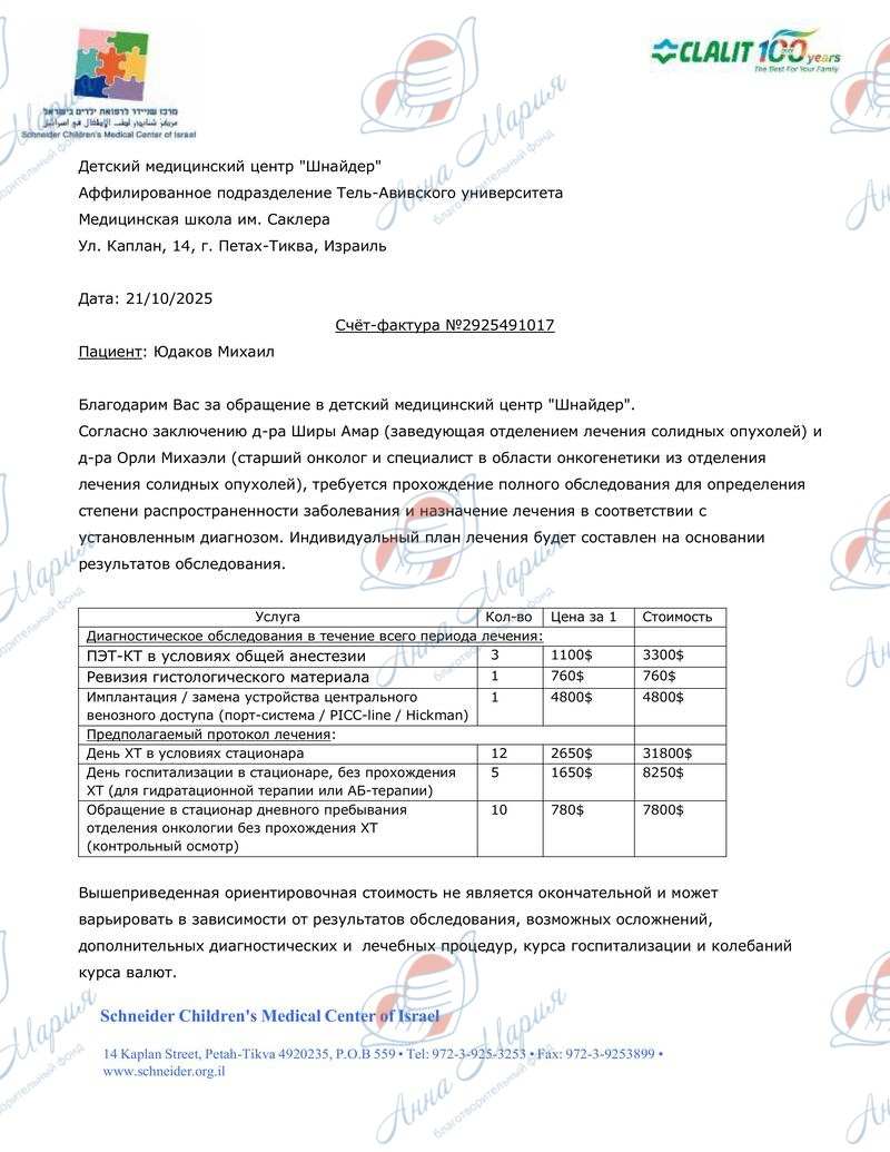 Этого не ожидал никто. Мама получила консультацию во многих клиниках, как в России, так и за границей, и приняла единственное правильное решение – начать лечение в клинике Шнайдер, Израиль. Врачи собрали консилиум и дали положительный ответ – гарантию, что после терапии Мише станет значительно лучше, и он войдет в ремиссию.