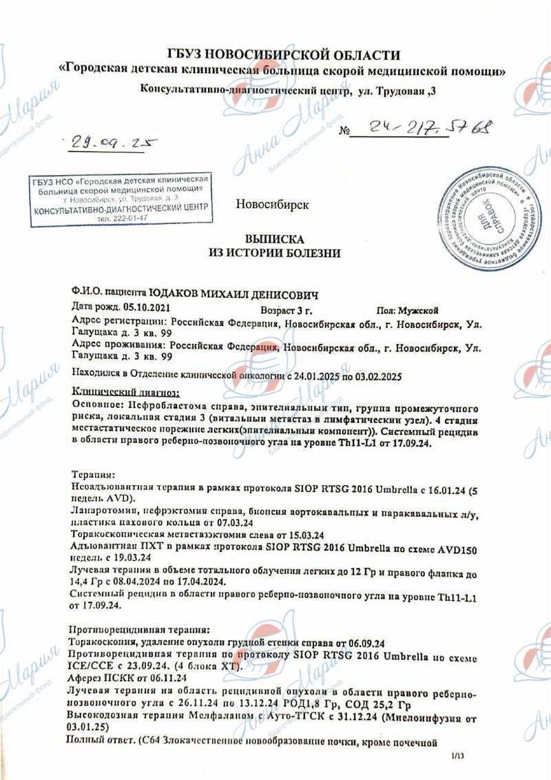 Благотворительный фонд «Анна Мария» собирает деньги на помощь маленькому Мише, который борется со смертельной болезнью – нефробластомой. Мама Виолетта обратилась к нам за финансовой помощью, и мы не смогли ей отказать.