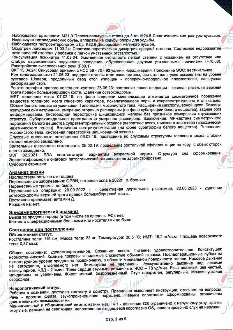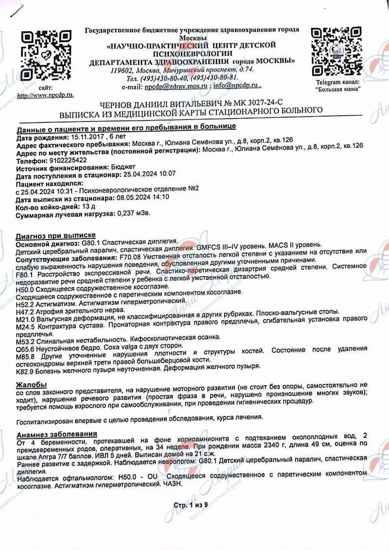 В 2022 г. Даниилу была проведена СДР, селективная дорсальная ризотомия. Это нейрохирургическая операция, которая помогает снизить спастичность – чрезмерное мышечное напряжение в ногах. В ходе операции у хирурга получилось выбрать и пресечь часть чувствительных нервных волокон в области спинного мозга, соответственно, снизить количество сенсорных сигналов, которые идут к мышцам, уменьшив тонус.
