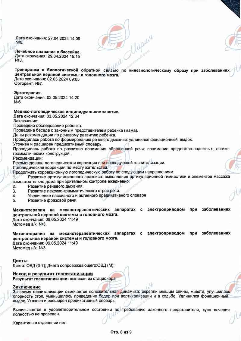 Изначально Даниил ходил на курсы в своем городе (Белгородская городская больница), но, к сожалению, они не дали никаких результатов, поэтому пришлось искать новые подходы к лечению. Сдвинуться с «мертвой» точки помогли занятия по Бобат и Войта терапии – благодаря им мальчик к 1,2 году научился ползать по-пластунски. В 2 года он стал на четвереньки – сейчас это его единственный способ передвижения.