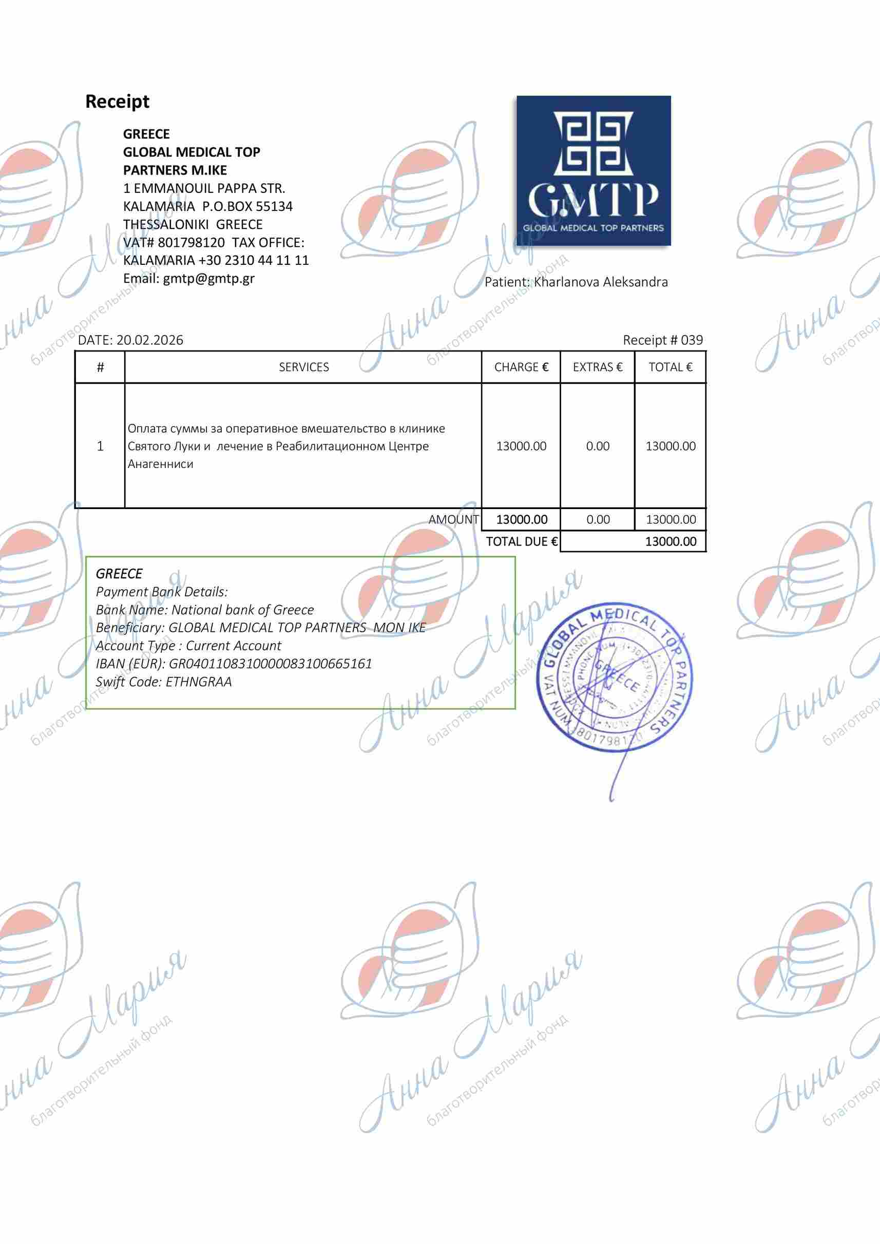В Москве Саша прошла консультацию у доктора Николаоса Ригопулоса (квалификация травматолог, ортопед, хирург) из клиники Святого Луки в Греции, который приезжал в Россию по рабочим вопросам. Он рекомендовал нашей подопечной выполнить операцию по удлинению сухожилий, а также ботулинотерапию, чтобы исправить вальгус – деформацию, при которой конечность отклоняется наружу от средней линии тела. Доктор может провести операцию, но ее цена – 26 345 евро. Это неподъемная сумма, и фонд «Анна Мария» просит вас помочь – сделать пожертвование для Саши!