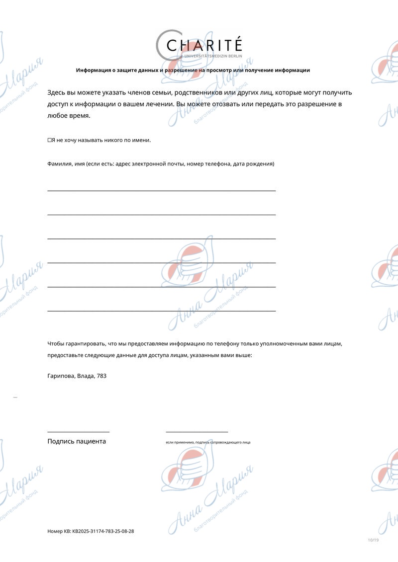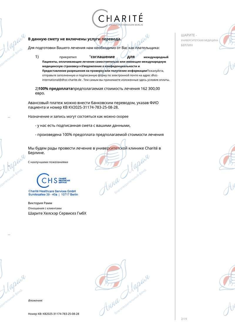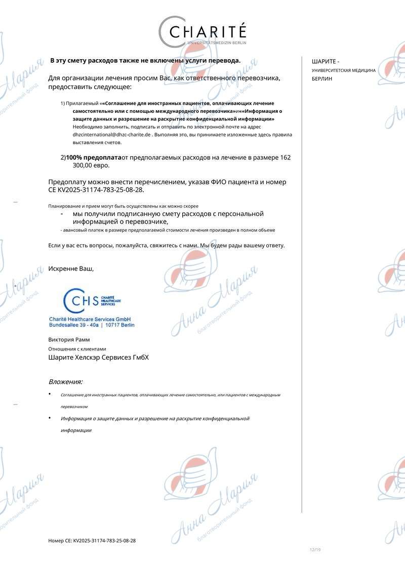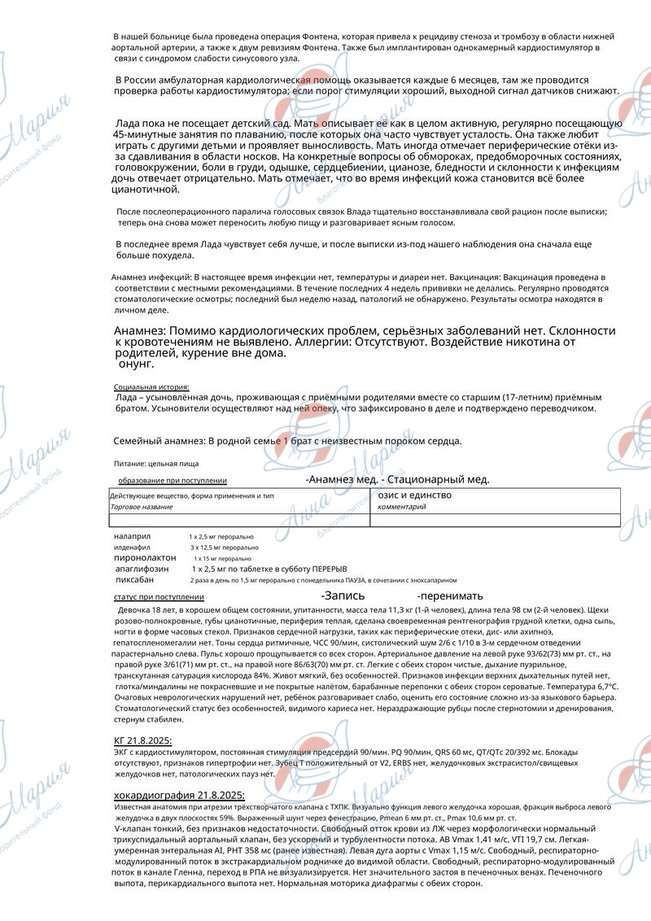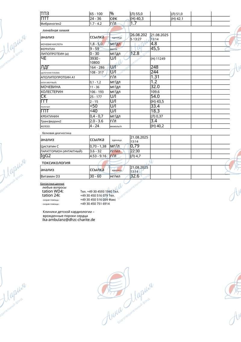 В августе 2025 г. Влада снова посетила Берлин, чтобы пройти контрольное обследование. К сожалению, после всех процедур врачи установили, что у Влады есть тромбы в левой легочной артерии, соответственно – через нее кровь не поступает в левое легкое, которое, в свою очередь, снабжается кислородом за счет коллатералей (сосудов).