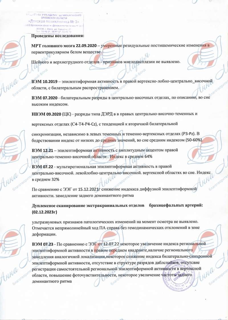 К старым занятиям врачи добавили сенсорную интеграцию, Бобат-терапию и встречи со школьным педагогом. Чтобы оплачивать лечение все годы, родителям девочки продали квартиру. К сожалению, эти деньги закончились. В прошлом году мама Фаины открыла кабинет маникюра, папа не работает и ухаживает за дочкой. Фонд «Анна Мария» просит помочь девочке и сделать пожертвование для оплаты курса ее реабилитации!