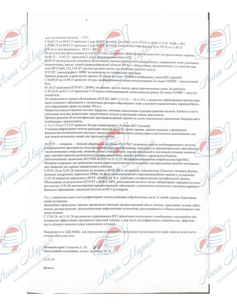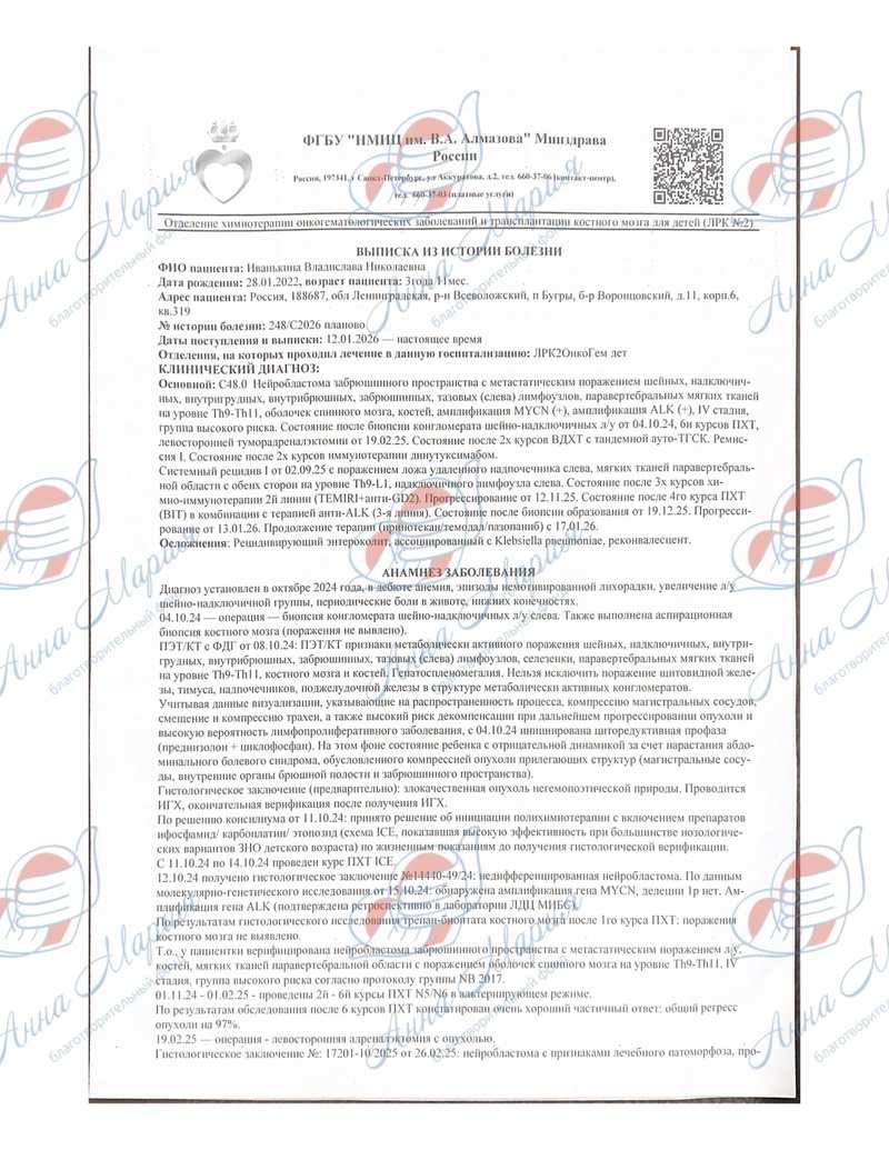 Но уже через год, в сентябре 2025 года случился рецидив. Борьба с болезнью приняла новую, еще более агрессивную форму. Влада прошла пять курсов высокодозной химии по второй линии, которая в сравнении со стандартными дозами имеет более высокую эффективность, но и такую же токсичность для организма. К сожалению, этот вариант лечения не дал результата, и болезнь продолжила прогрессировать.