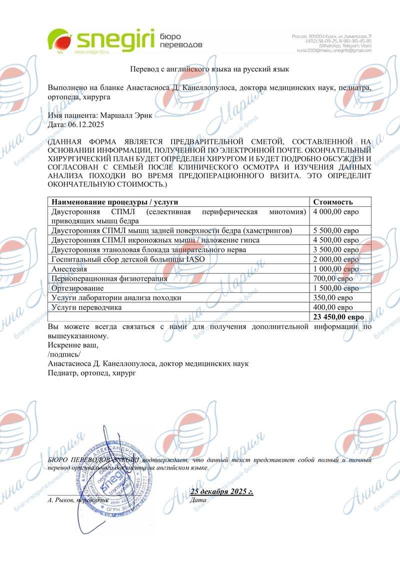 Если не сделать операцию SPML сейчас, то дальше состояние Эрика только ухудшится, ему будут необходимы тяжелые ортопедические стельки на стопах, долгое гипсование и прочее. Врачи утверждают, что после этой операции мальчик достигнет прогресса, начнет ходить без боли, станет более сильным, крепким и выносливым.