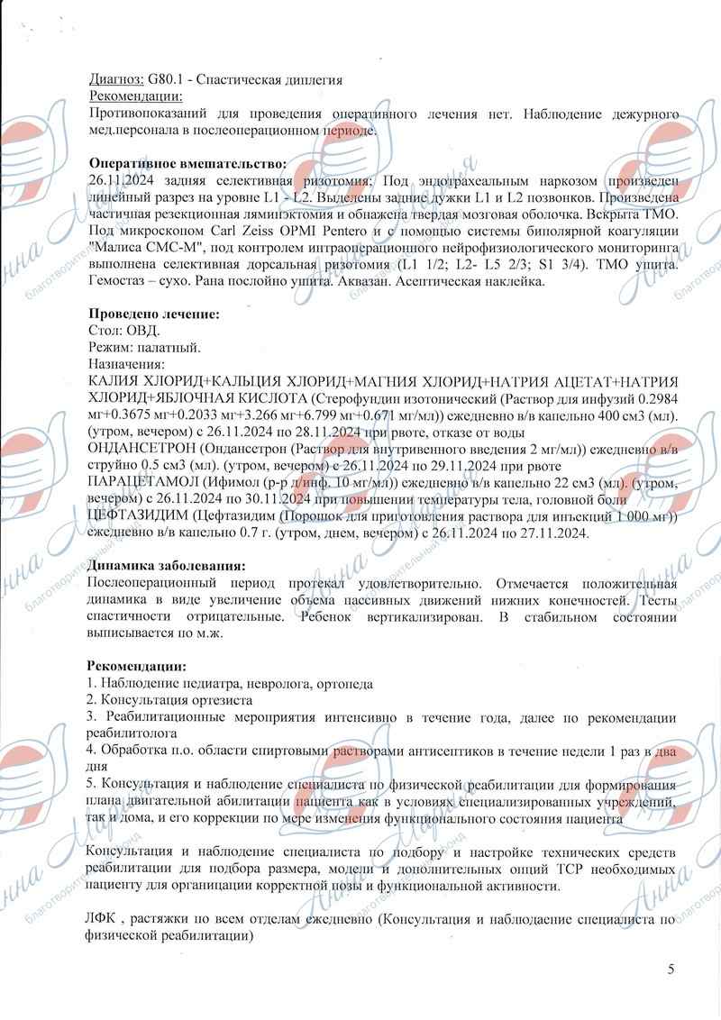 Операция СДР проводилась на спинном мозге и была направлена на устранение мышечной спастики путем пресечения части патологически активных чувствительных корешков. В случае с ДЦП это должно было снизить избыточные сигналы, которые подаются к мышцам. Операция прошла успешно, но потребовалась долгая реабилитация.