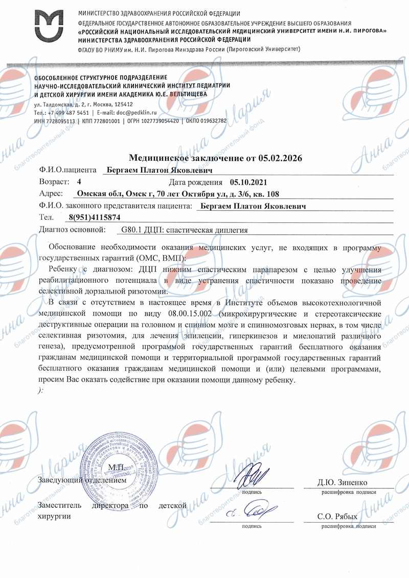 Врачи на курсах реабилитации не могут глобально решить проблему, они лишь временно облегчают состояние больного. После консультации родители Платона приняли решение о необходимости провести операцию – селективную дорсальную ризотомию.
