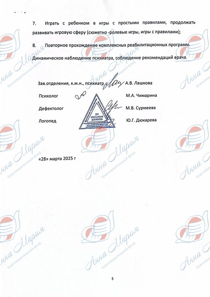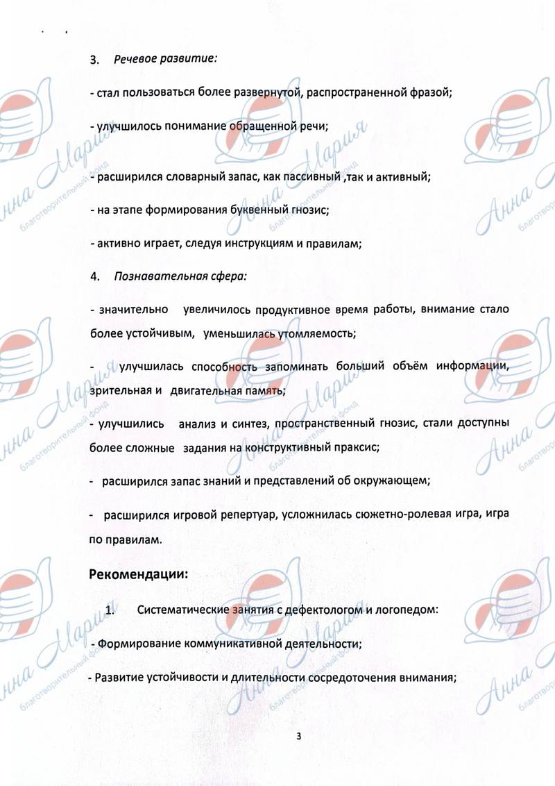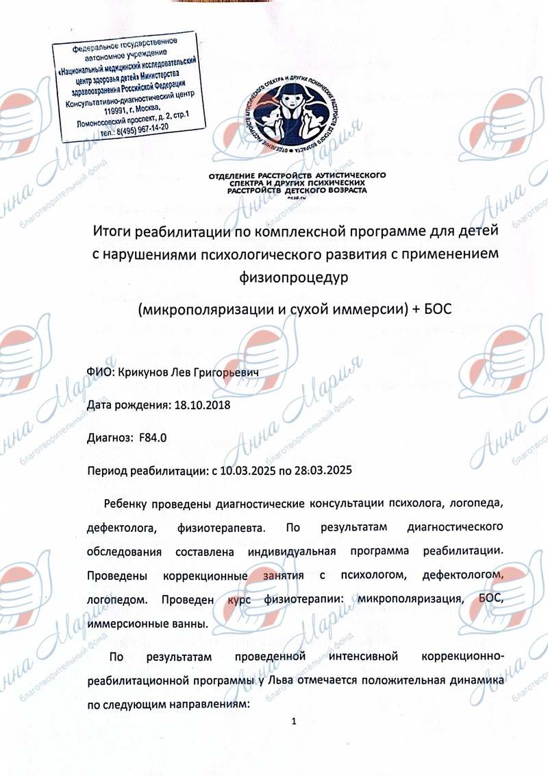 Сейчас мальчику 7 лет. За последний год произошли заметные изменения в его развитии. Так, у Льва есть улучшения в разговорной речи. У него стабилизировалось поведение – если ранее он никого не слушал, мог кричать, плакать без причины, то сейчас мама отмечает, что он стал более усидчивым, старательным, может концентрировать свое внимание. Но раздражительность и высокая активность в поведении все равно осталась. Кроме того, он до сих пор не может разговаривать – обращенная речь на низком уровне.