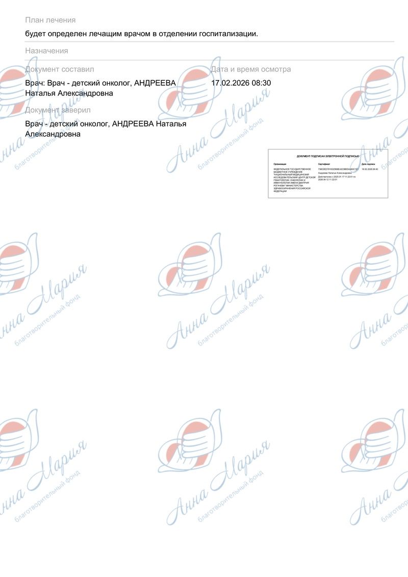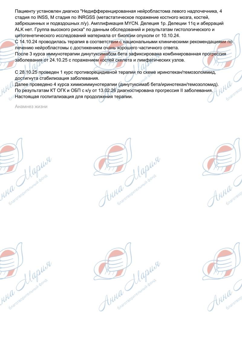 Начался период ремиссии, который, к сожалению, продлился не так долго. В октябре 2024 г. врачи сказали, что болезнь вернулась. Анализы показали, что в организме преобладает рост онкологических маркеров, есть новые очаги в лимфоузлах и костях. В феврале 2026 г. была зафиксирована еще большая прогрессия онкологии. Только благодаря стойкости духа и улыбке Софии семье удалось пережить тот страшный период.